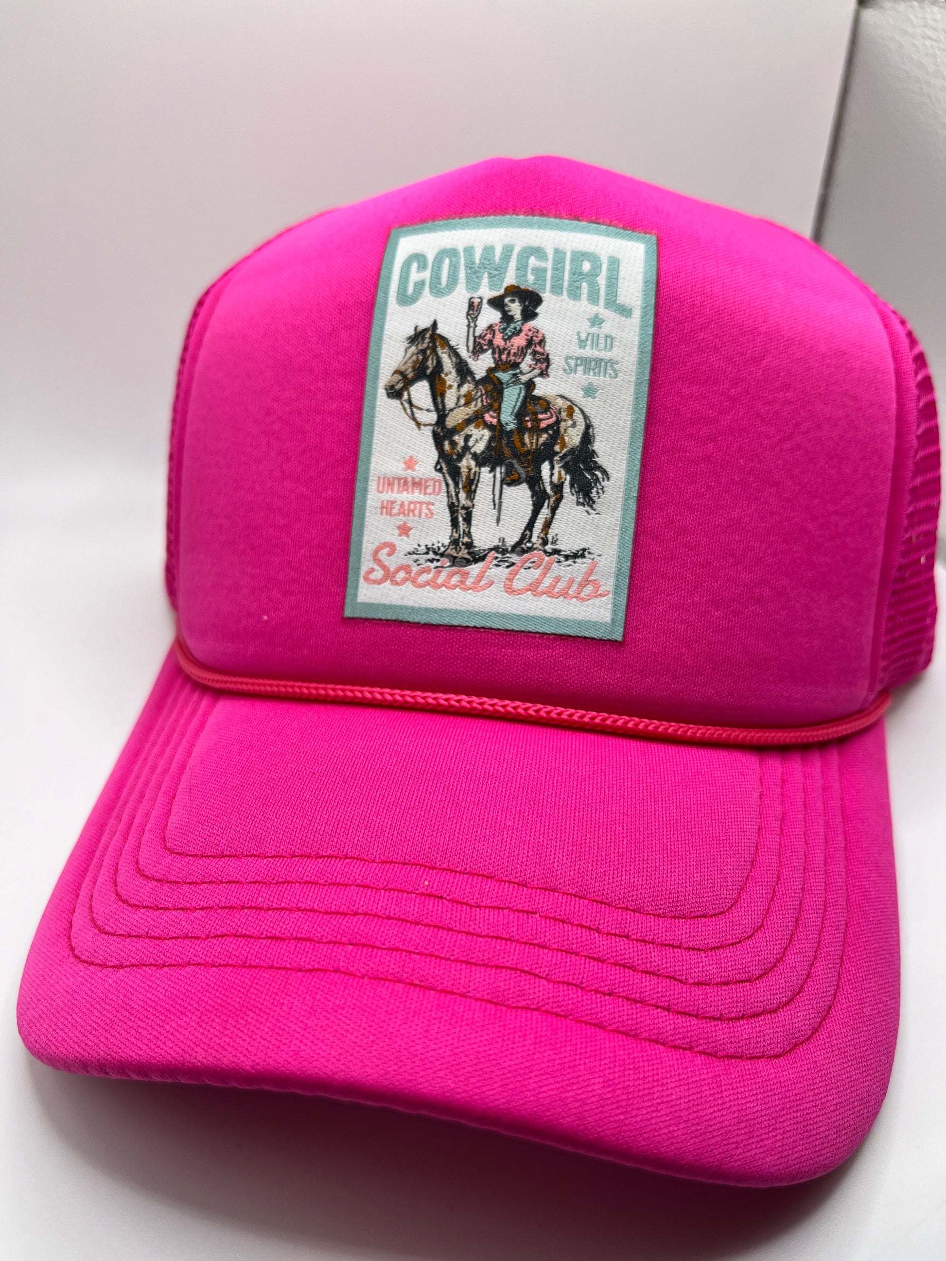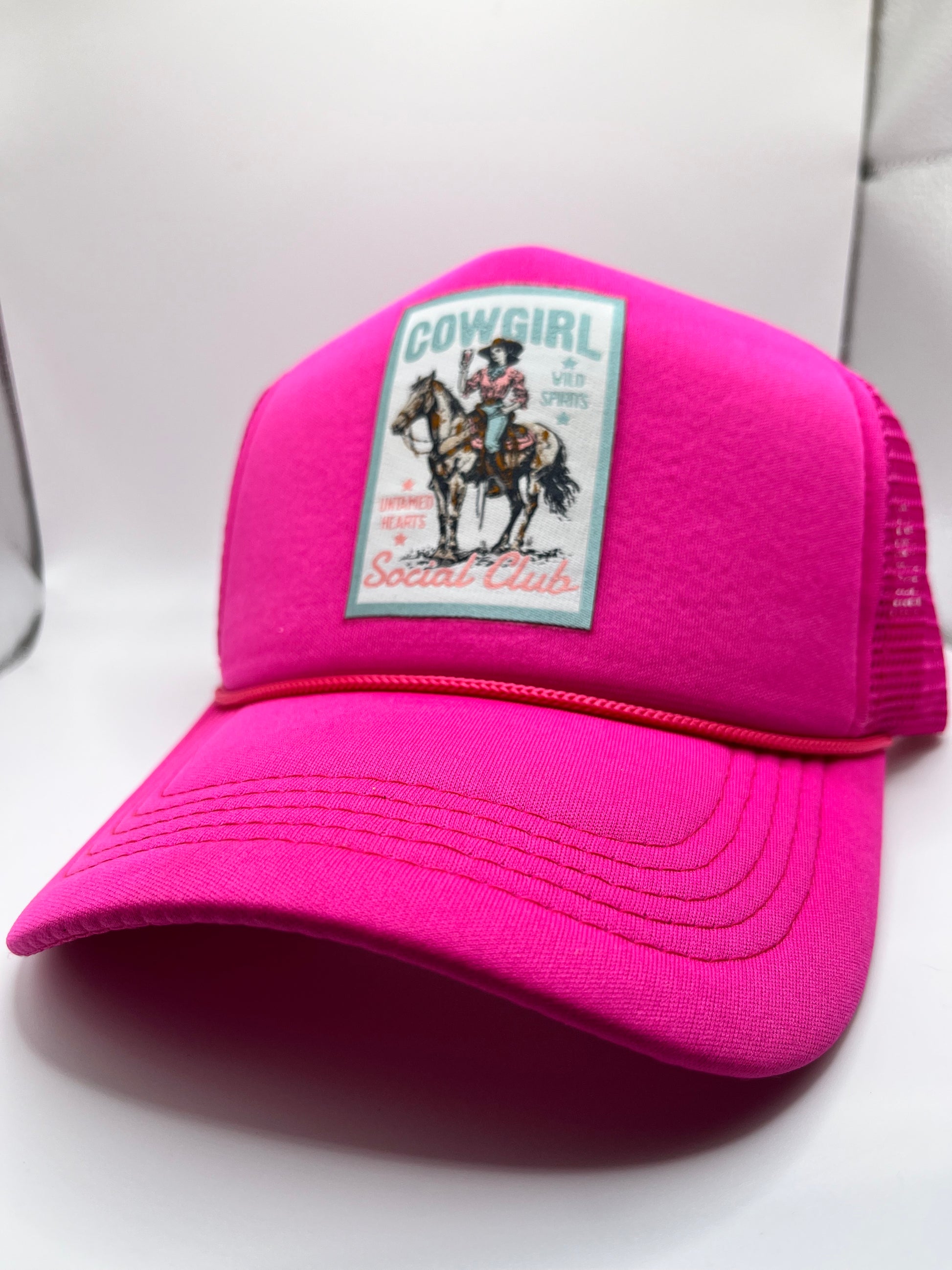 Hot pink foam front trucker hat. One patch, adjustable